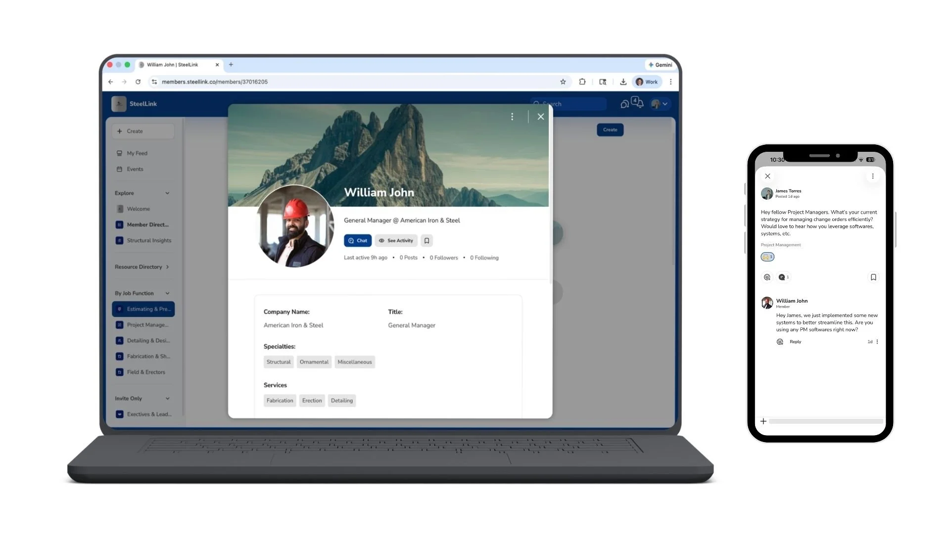 SteelLink is a professional networking platform built to keep steel professionals connected to the industry. Our mission is to help steel construction teams build nationwide relationships, make better decisions, and stay ahead of industry trends.
